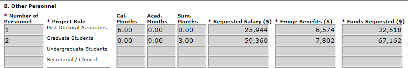A Cat II and Cat III line items can be linked to properly complete the SF424 RR Budget Graduate Students in Section B on Cayuse budget import for that combines the Cat II Grad Student object code with the Cat III Grad Student Summer Wages.  This feature will assist in properly report the correct number of Graduate Students on the form.  If line items are not linked, the Section B quantity will total 2 instead of 1.